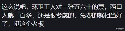 有网友现身说法,说对于环卫工人来说,一张电影票大几十块钱,两口子看一场就得一百多,肯定得好好掂量掂量。这免费的票简直就是及时雨,必须力挺这个老板!