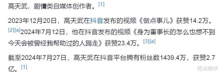 高天武,竟然是一位剧情类自媒体创作者。在 2023 年 12 月 20 日,他在抖音发布的那支《做点事儿》的视频,如同投入舆论湖面的巨石,激起千层浪,一举斩获了 14.2 万点赞。就凭借这一个视频,他成功破圈,摇身一变成为坐拥 1400 万粉丝的超级网红博主。